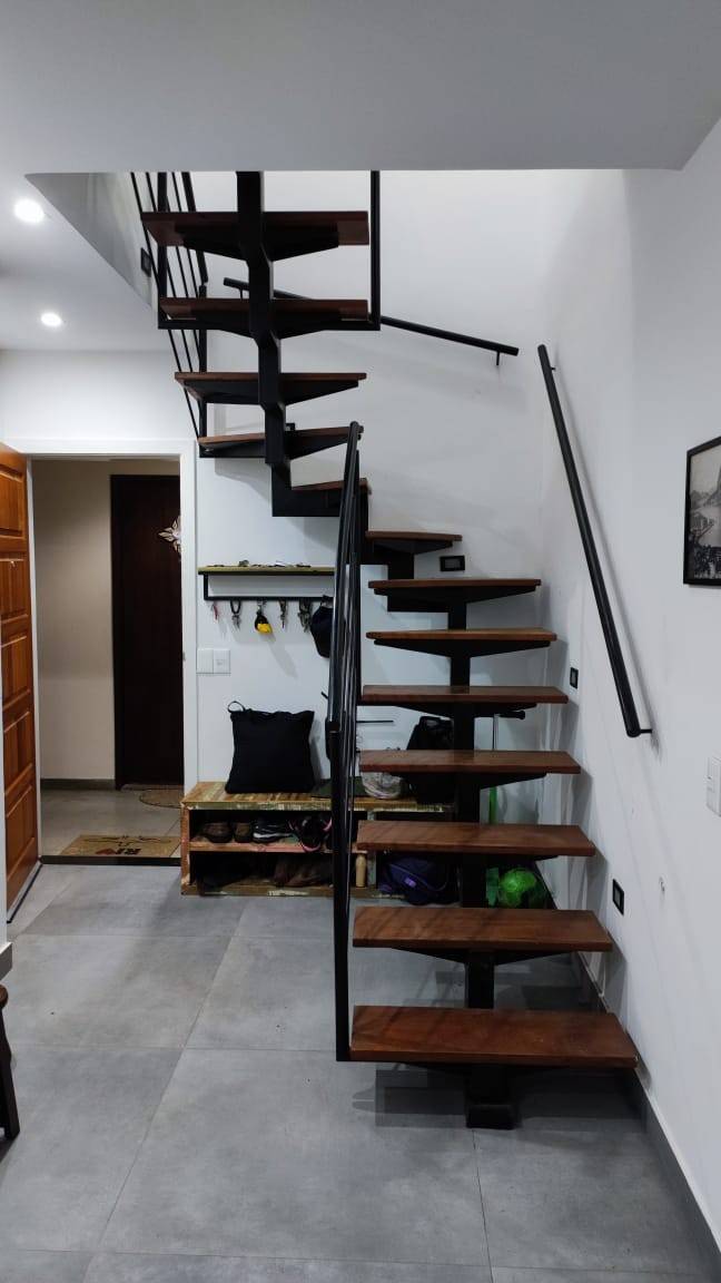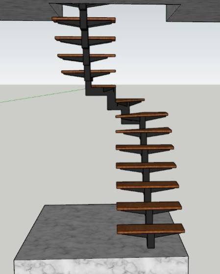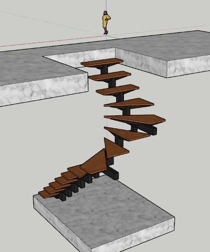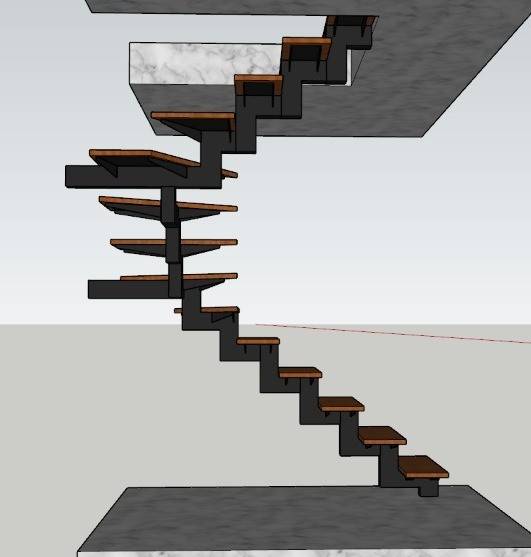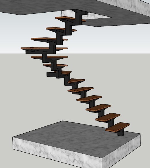 • Escada espinha de peixe. Estrutura central fazendo zig zag em  perfil de aço cabono 120 mm x 80.