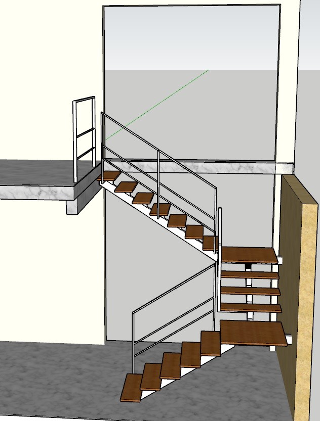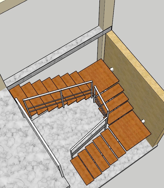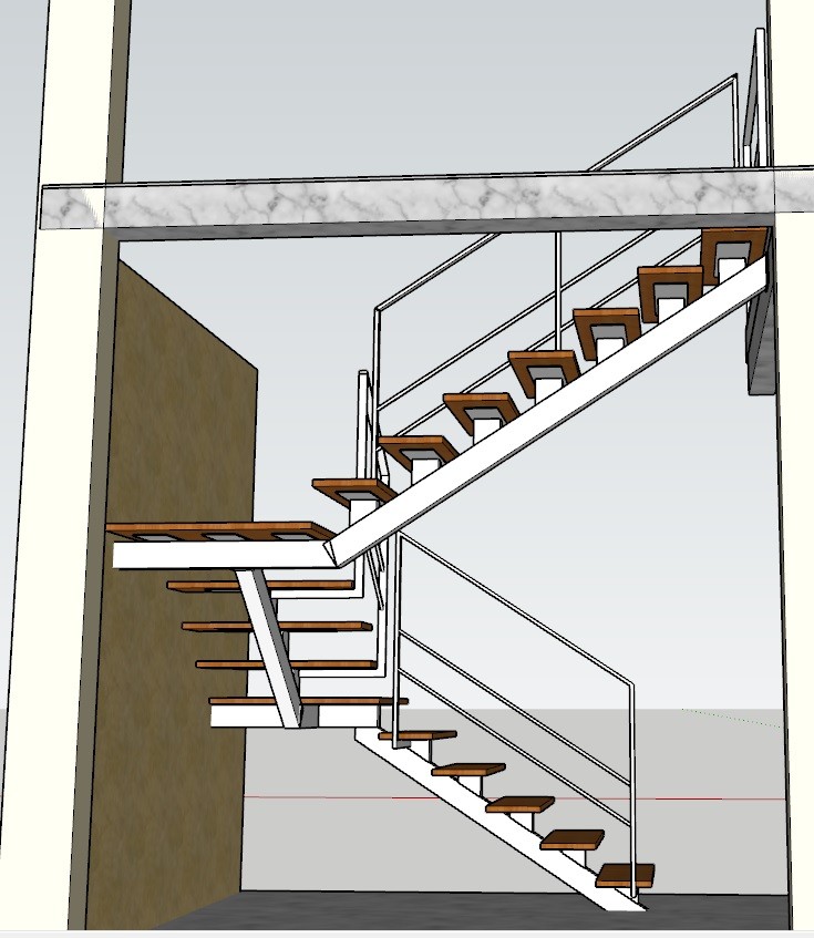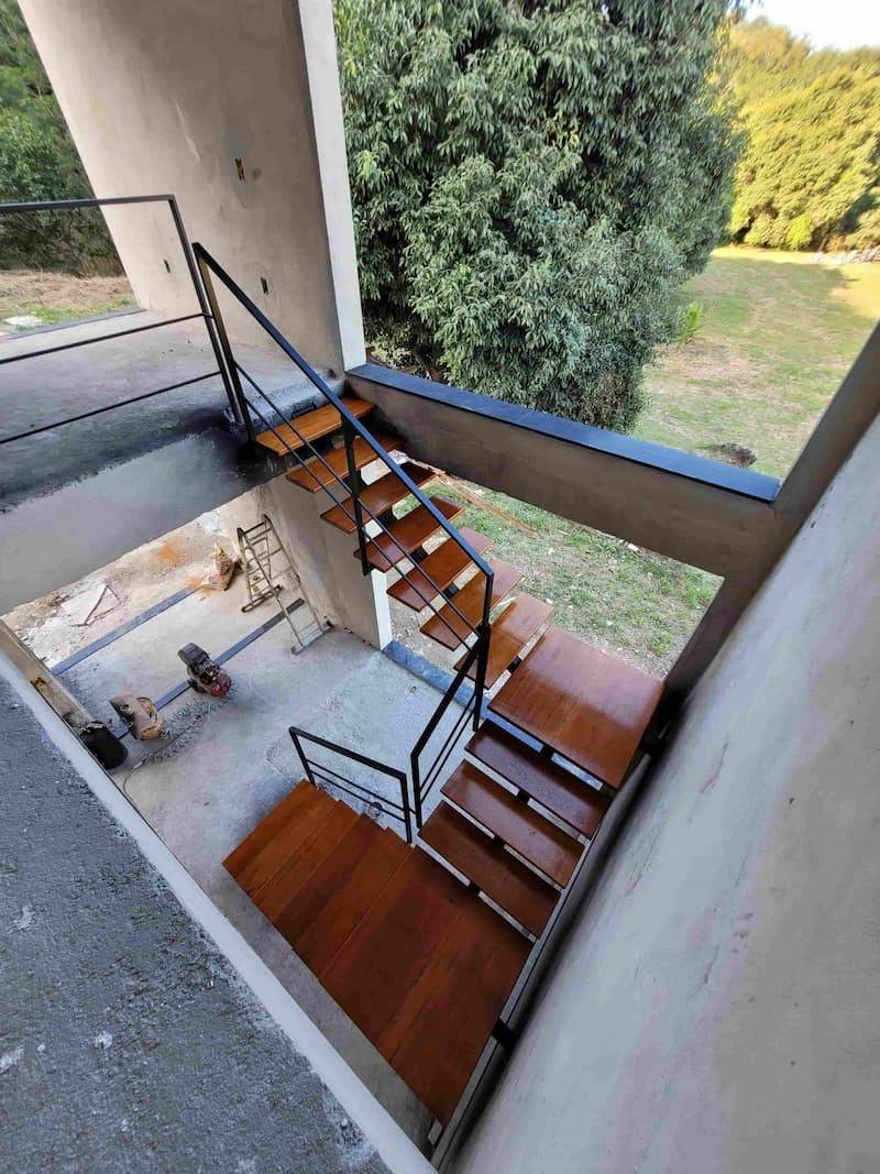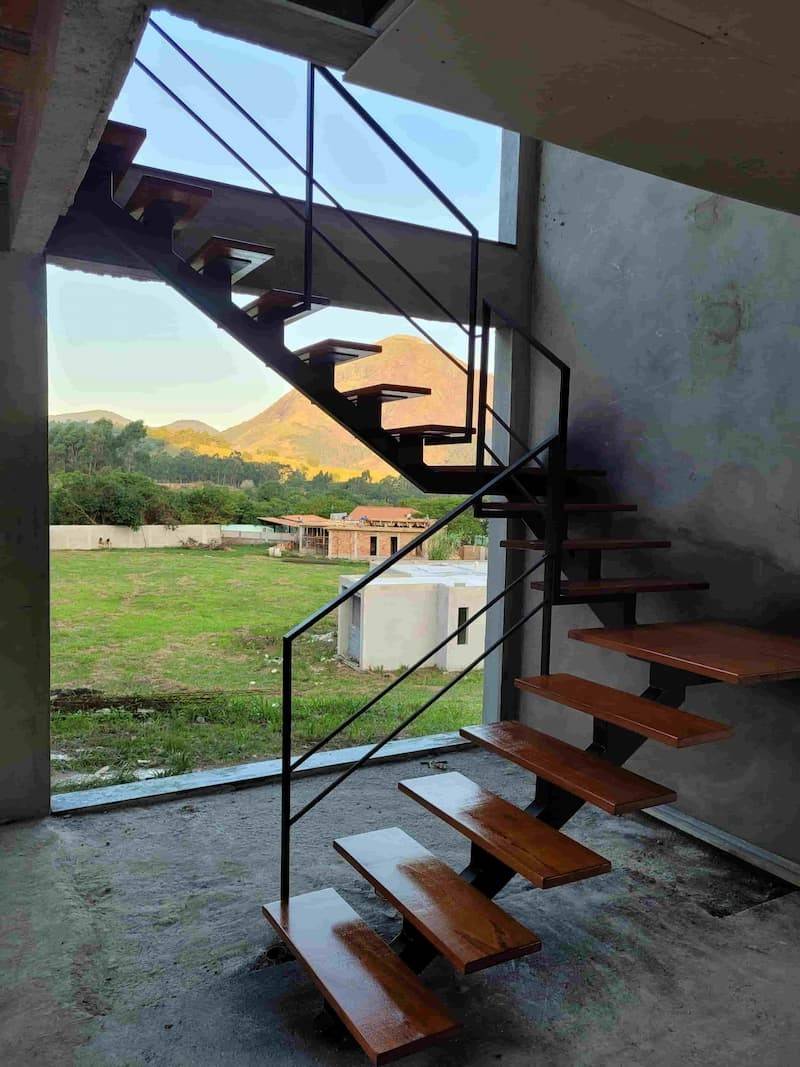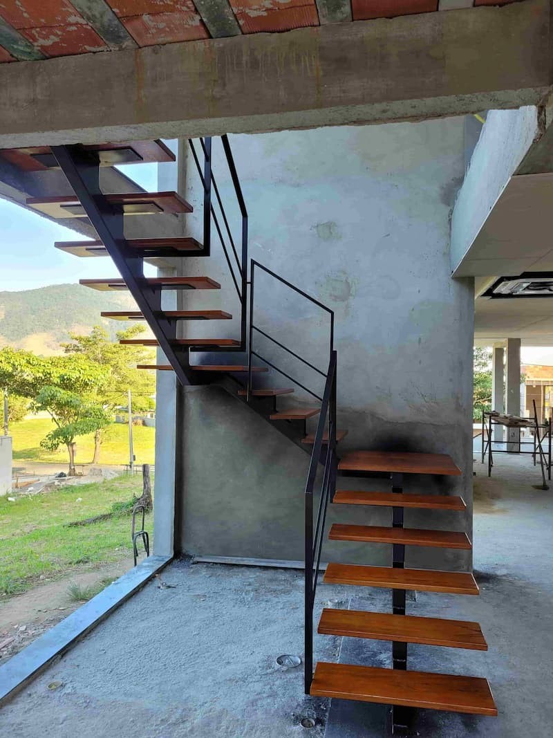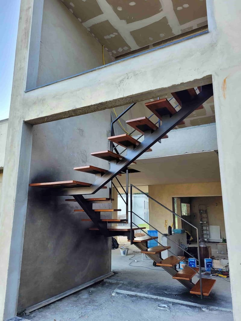 • Escada espinha de peixe. Estrutura central  em  perfil de aço cabono 120 mm x 80.