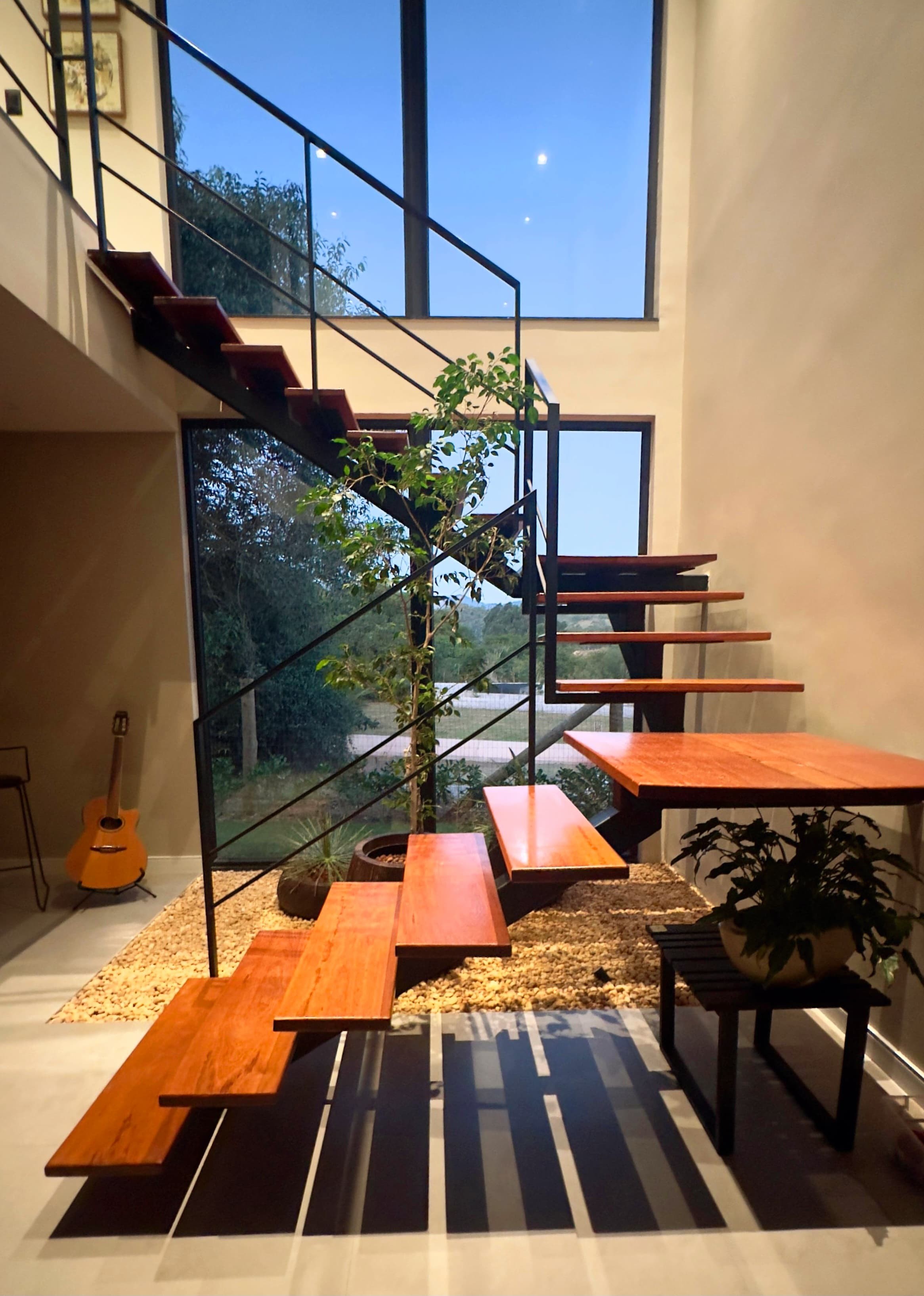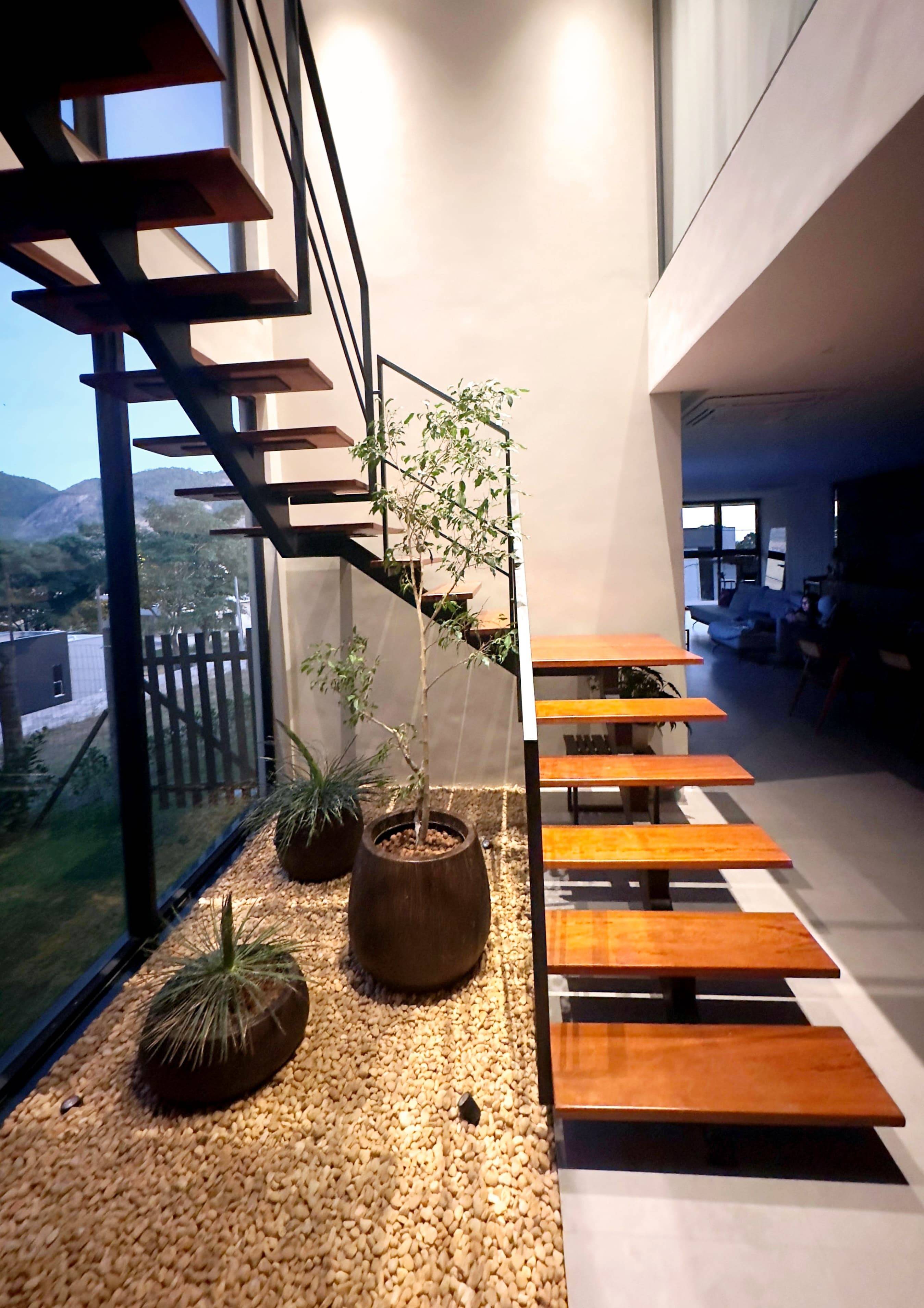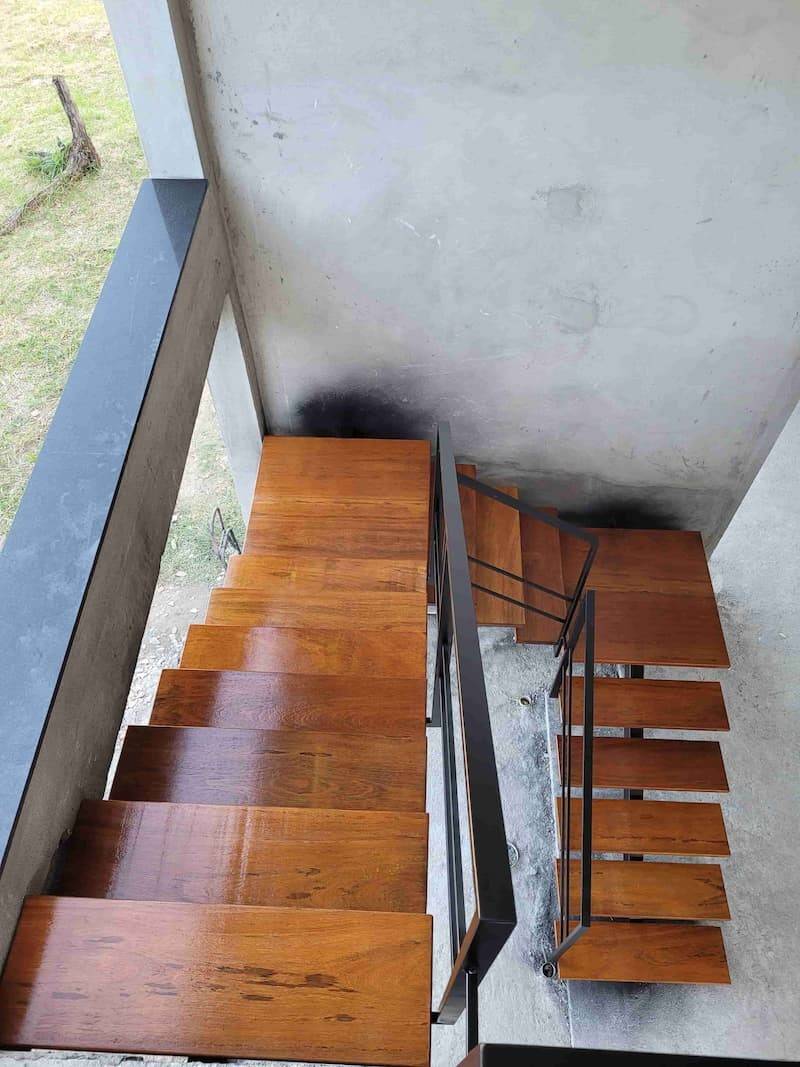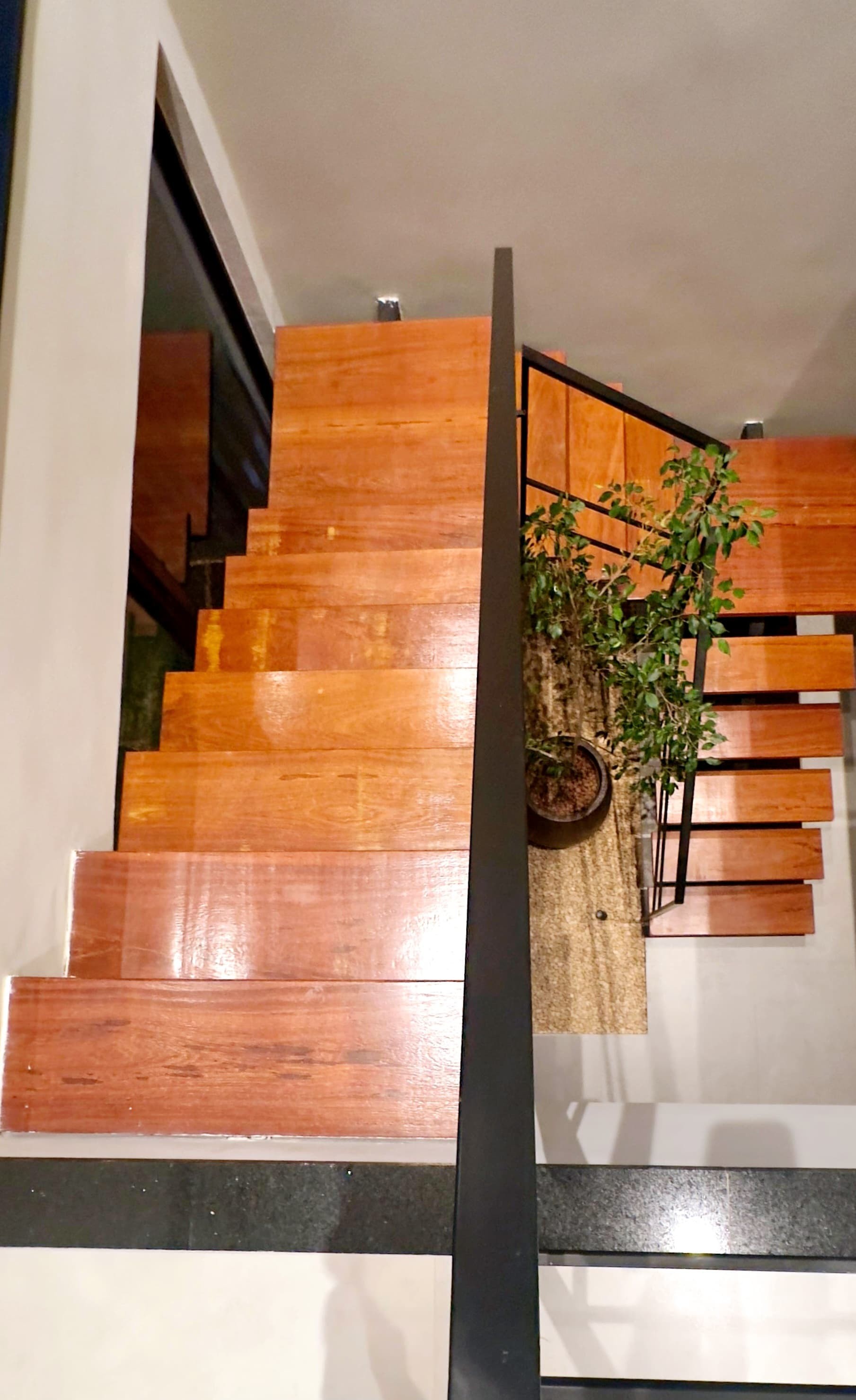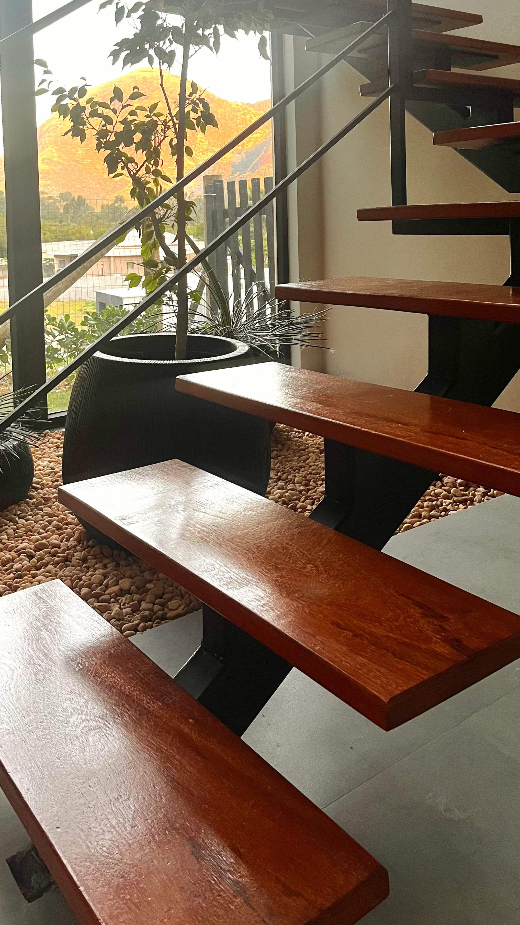• Degraus em madeira Angelim Pedra 3,5 cm de espessura. Largura 90cm.